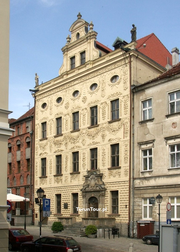 ♦ Żeglarska 5 - jedna z najcenniejszych gotyckich kamienic w Toruniu, z XIII/XIV wieku, o fasadzie z glazurowanych kolorowych cegieł, dawna siedziba Bractwa Kupieckiego, wewnątrz maryjne malowidła gotyckie (Nawiedzenie, Zwiastowanie, Koronacja) z około 1390-1400 roku, przebudowana w XVII i XIX wieku z fasadą neorenesansową. ► Więcej >>> |