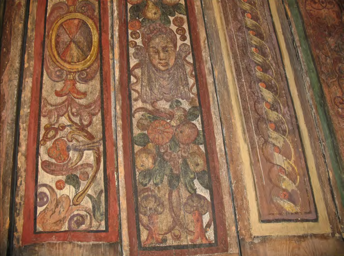 Fragment polichromowanego stropu w pomieszczeniu w trakcie tylnym parteru, XVI w., fot. A. Bystroń-Kwiatkowska