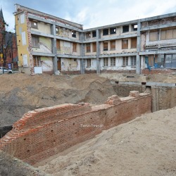 Odkryty wiosną 2022 r. doskonale zachowany fragment XIII-wiecznego muru zewnętrznego Nowego Miasta Torunia na terenie budowy Teatru Muzycznego