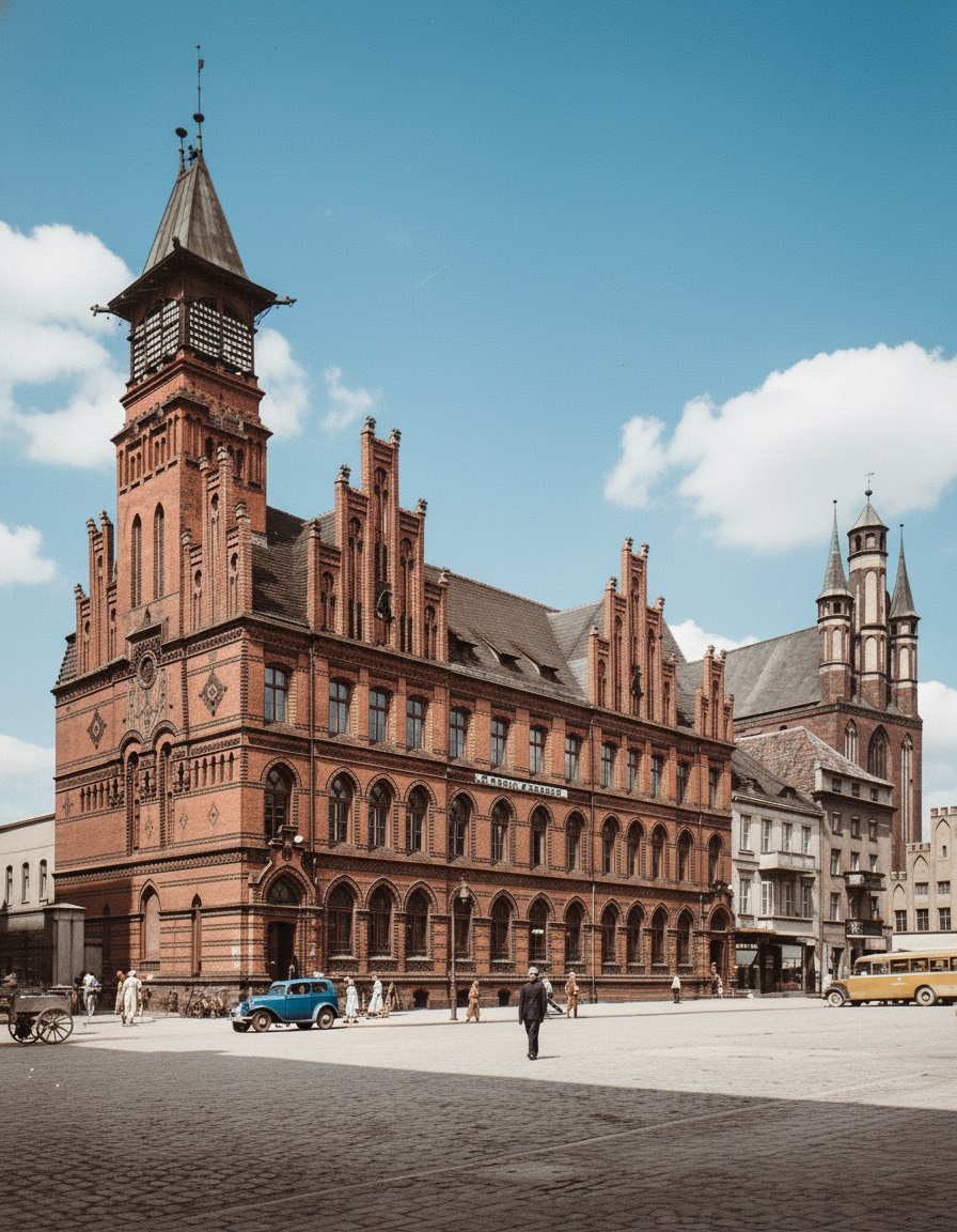 Duży neogotycki gmach poczty pochodzi z lat 1881-1893.