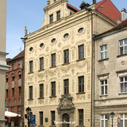 Cała fasada pokryta jest niezmiernie bogatymi stiukowymi ornamentami roślinnymi, co powoduje, że dziś budynek ten jest jednym z nielicznych przykładów toruńskiego typu zdobnictwa barokowego. Gdzieniegdzie pomiędzy tymi ornamentami widoczne są odsłonięte fragmenty ceglanych łuków gotyckich.