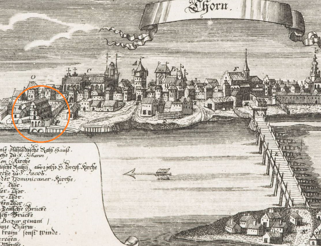 Obraz Kazanie Chrystusa na łodzi, 1671 r. z widokiem m.in. żurawia toruńskiego