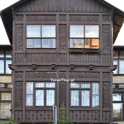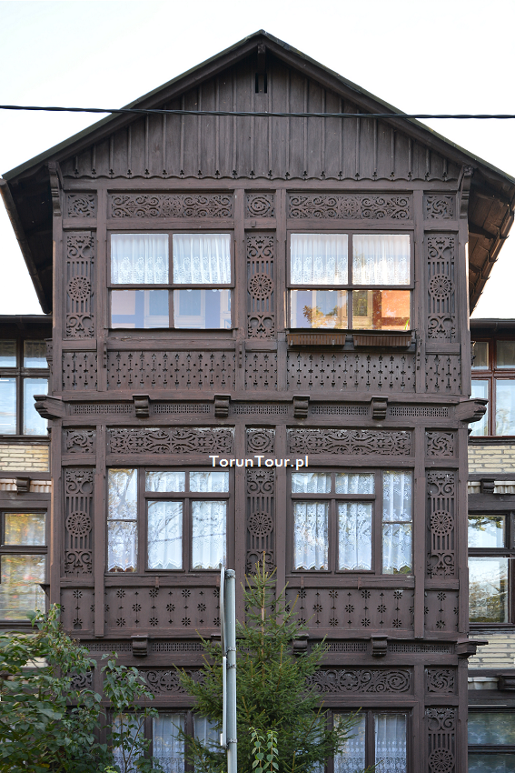 Kolejny z zachowanych nielicznie drewnianych zabytkowych domów na Rybakach - pod nr 23. Zbudowany w 1892 r. (na miejscu starszego, przynajmniej z 1816 r.) w specyficznej sumikowo-łątkowej konstrukcji ścian z dekoracyjnym zakończeniem belek i białymi oknami kontrastującymi z ciemnymi ścianami.