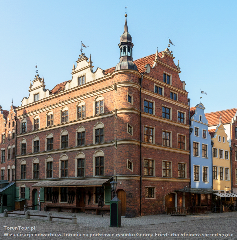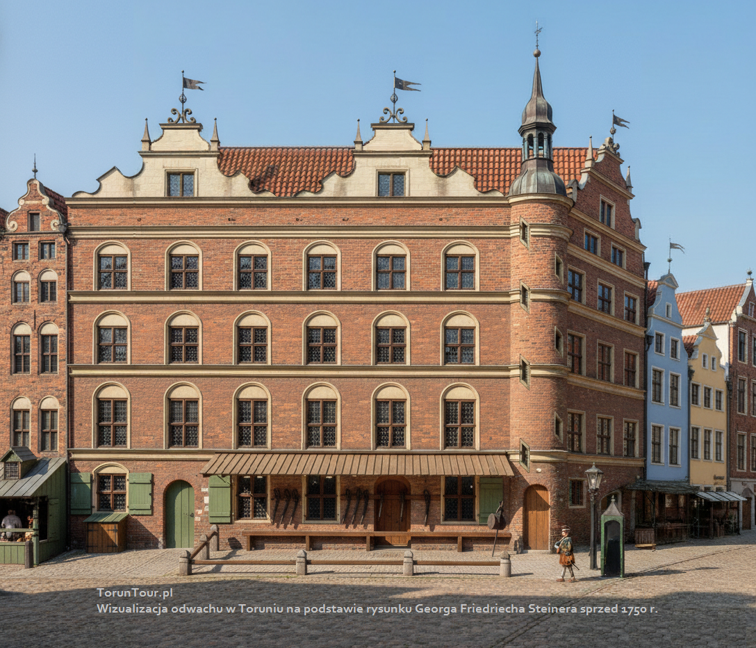 Trzypiętrowy budynek dawnego Odwachu stoi na rogu ul. Żeglarskiej i Szerokiej, a więc w centrum Starego Miasta. Był siedzibą toruńskiego zawodowego oddziału wojskowego.