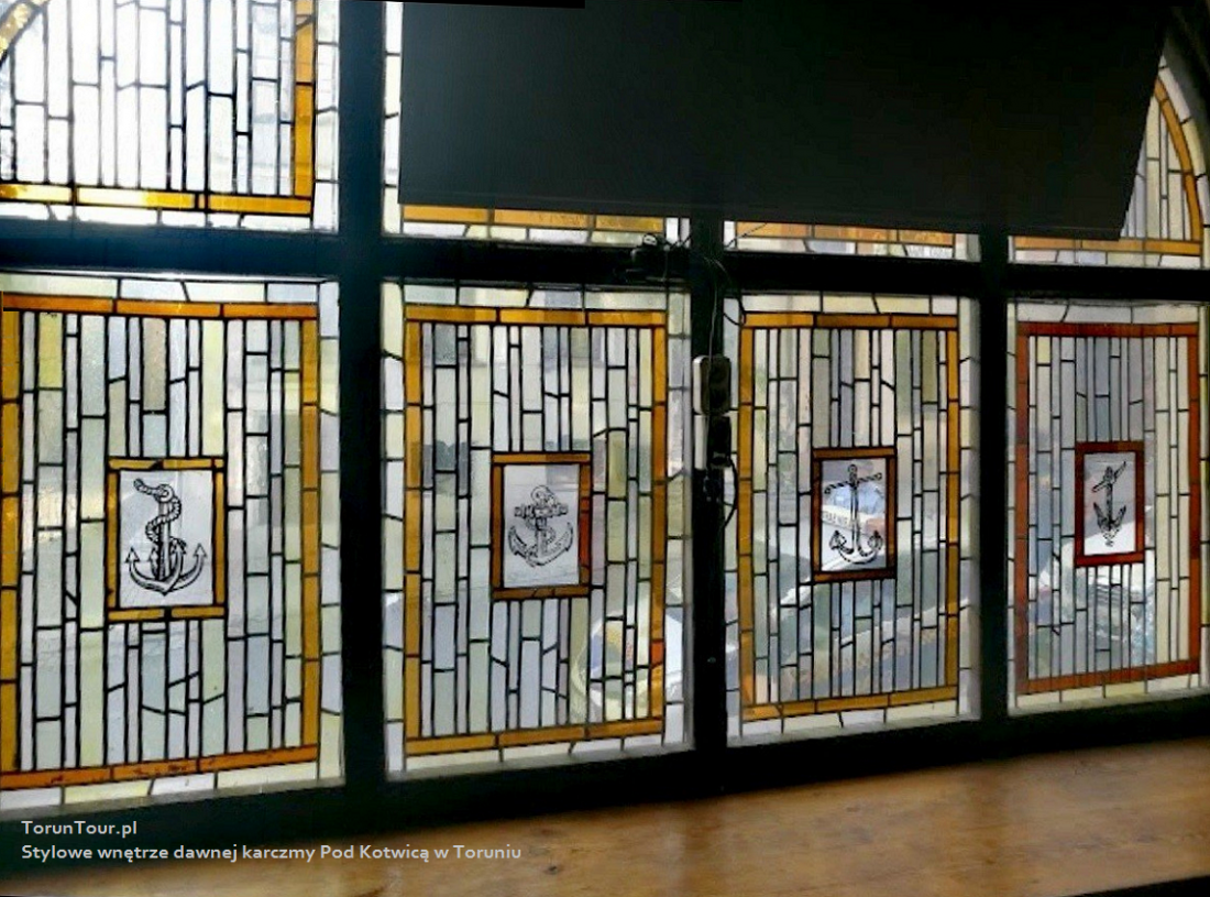 "Pod Kotwicą" natomiast wnętrze posiadało stylistykę i ornamentykę związaną z motywami wodniackimi, z historią Torunia, nawigacją i żeglugą. Na fasadzie od strony ulicy zachowała się jeszcze kuta wywieszka-szyld z motywem kotwicy.