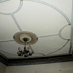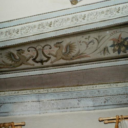 Z ok. 1840 r. pochodzi też ozdobny, polichromowany plafon w dawnym salonie na 1. piętrze oraz stolarka.