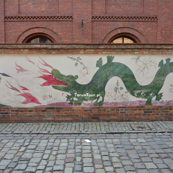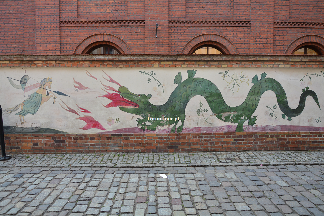 Odwołaniem do okoliczności, do miejsca ulicy Przedzamcze jest ta część muralu, ukazująca legendarnego smoka toruńskiego. Wg pisemnych realcji świadków smoka widziano w 1746 r.