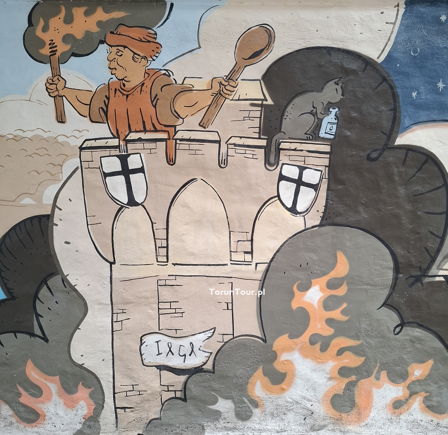 Jednym z przełomowych momentów w odmętach toruńskiej historii był rok 1454. Wtedy to ruch antykrzyżacki osiągnął apogeum, a legendarny krzyżacki zamkowy kucharz Jordan, będący w zmowie z Torunianami buntownikami, miał chochlą dać znak z wieży zamkowej do ataku.