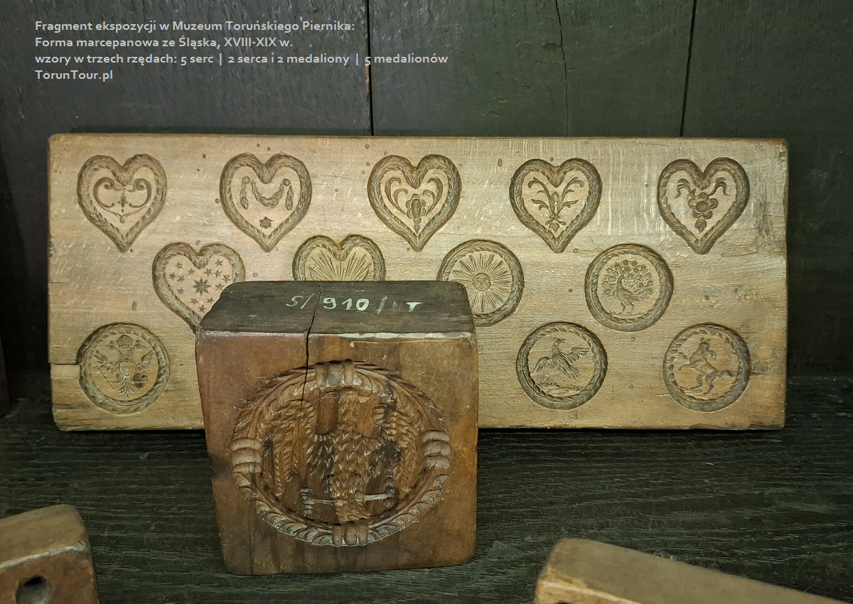 Forma marcepanowa z ok. 1800 r. na wystawie stałej w Muzeum Toruńskiego PiernikaZ czasem jednak smak marcepanu sprawił, że rozpoczął on zupełnie niemedyczną karierę... Miało to miejsce na przełomie XVIII i XIX w. gdy pojawił się powszechnie cukier z buraków cukrowych. Wtedy zwyczaj pieczenia pierników i marcepanów zaczął upowszechniać się w domowych kuchniach.